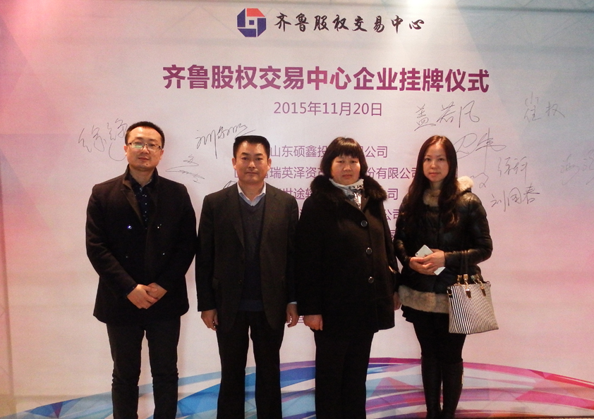 2015年11月20日,安丘博陽(yáng)機(jī)械制造有限公司的董事長(zhǎng)、總經(jīng)理及工作人員在淄博齊魯股權(quán)交易中心參加企業(yè)掛牌儀式。